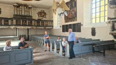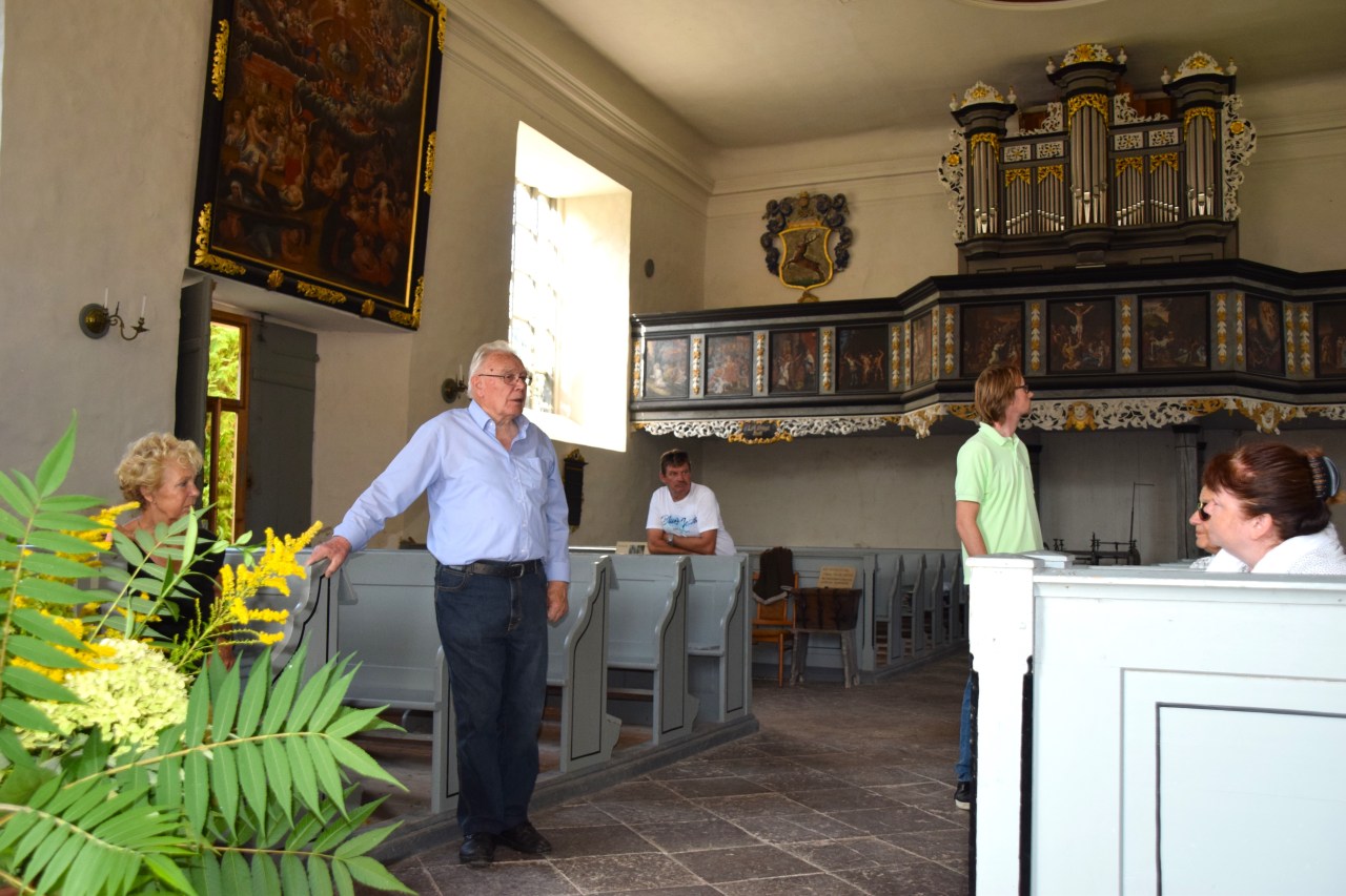 Die Sonne ließ Nehringen und seine Baudenkmäler am Tag des offenen Denkmals erstrahlen. Etwa 40 Besucher kamen durch Nehringen, lauschten interessiert den Erläuterungen zur Geschichte des Fangelturms und den Plänen für den weiteren Ausbau. Herr Bergemann begeisterte seine Zuhörer in der Kirche mit der Geschichte der Kirchenrettung. Spätestens nach der Führung im Gutshaus ließen sich viele bei Kaffee und Kuchen nieder. Wir danken für die Spenden des Tages!