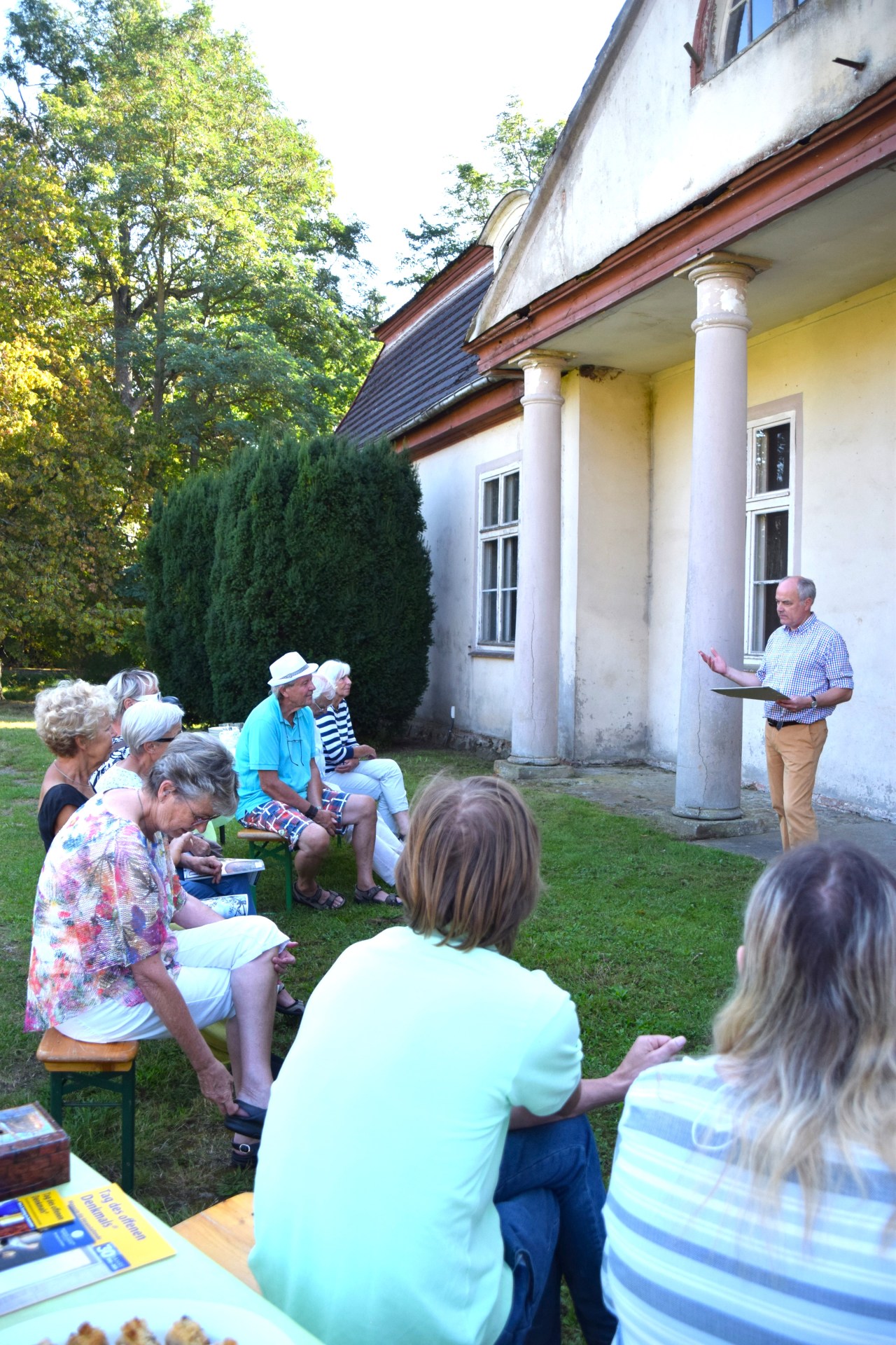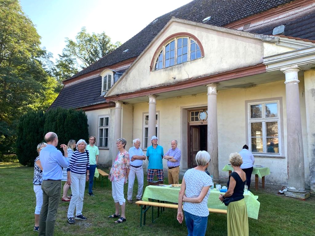Am Tag des offenen Denkmals 2022 freuten wir uns vielen Besuchern den Förderverein vorstellen zu können. Etwa 70 interessierte Gäste ließen sich im Verlauf des Tages den Fangelturm, seine Geschichte und die geplanten Instandsetzungsmaßnahmen erläutern. Die Lage im Park der Gutsanlage des idyllischen Dorfes Nehringen begeisterte die Besucher und sie ließen sich in die Vorstellung des restaurierten Turms mit Aussichtsplattform über das wunderschöne Trebeltal mitnehmen. Nach zwei Coronajahren freuten wir uns über die persönlichen Begegnungen und anregenden Gespräche bei Kaffee und Kuchen vor dem Gutshaus.